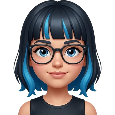 Chica de piel blanquita con mechas azules lentes y pircing en la ceja emoji
