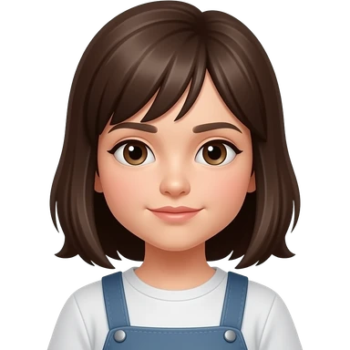 Chica de cabello castaño largo, con ralla al costado, sonriendo emoji