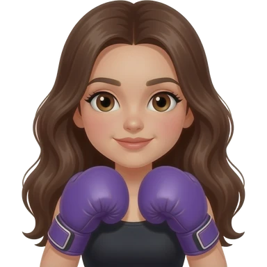 Chica morena con guantes de box morados emoji