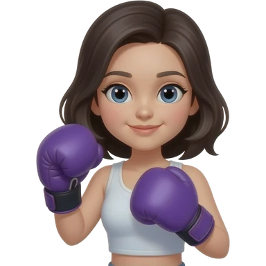 Chica morena , con ojos cafes , cafe largo con guantes de boxeo morados emoji