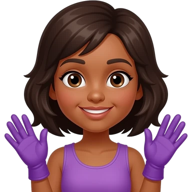 Chica morena , con ojos cafescon guantes de morados emoji