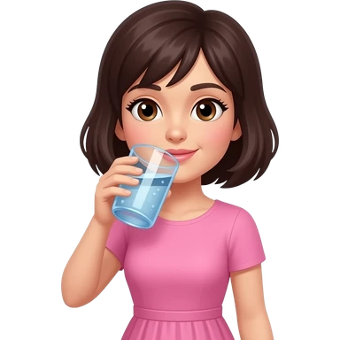 chica de cabello oscuro y corto, con ojos color cafe, con vestido color rosa, tomando agua emoji