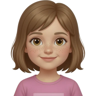Emoji de chica blanca con cabello castaño lacio y ojos cafés con pestañas bonitas emoji