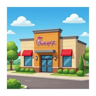 Chick-fil-a exterior, isometric dollhouse-style, realistic emoji