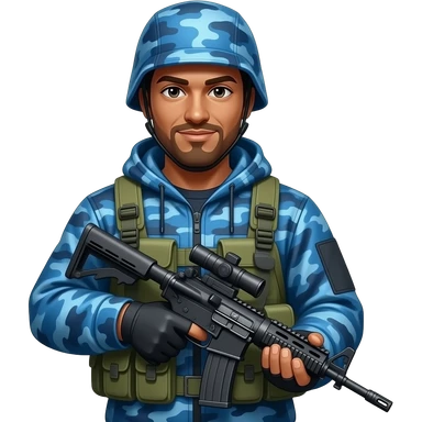 Full body of a Blonde army man holding service weapon and wearing camo uniform emoji