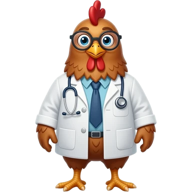 chicken with grey feathers throughout in a lab coat with glasses holding a clipboard judging you emoji