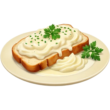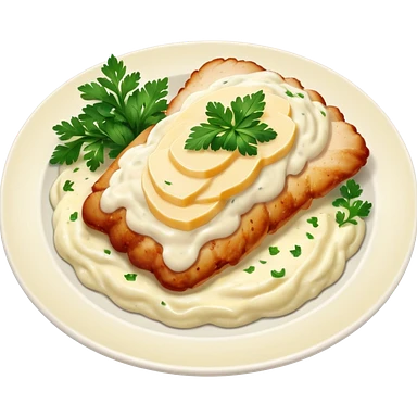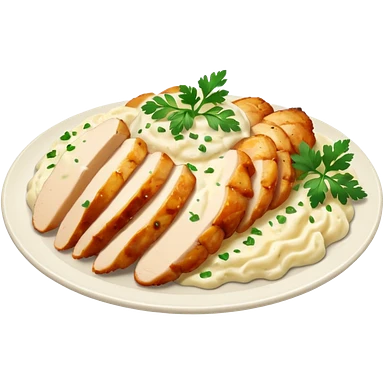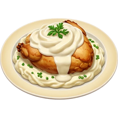 chicken slices with alfredo sauce and mashed potatoes on the side emoji