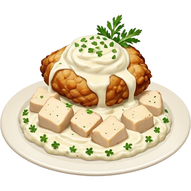 chicken chunks with alfredo sauce and mashed potatoes emoji
