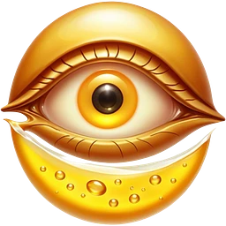 Golden liver, egg yolk, and fish floating around an eye emoji