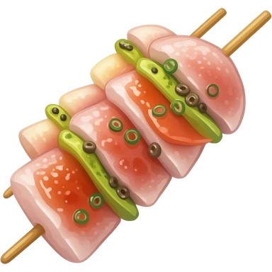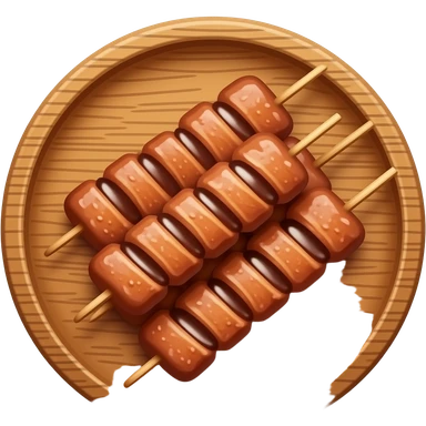 Cinematic Realistic Yakitori Dish Emoji, depicted as skewered, grilled chicken pieces with a charred finish rendered with crisp textures and appetizing, natural lighting. emoji