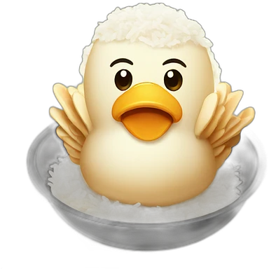 strawberry in rice with chicken inside of a beautiful flowe design bowl emoji