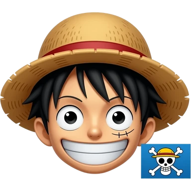 Minimal flat Straw Hat pirate skull, clean vector, bold outlines, pure black background, centered composition, crisp edges, 1:1 emoji
