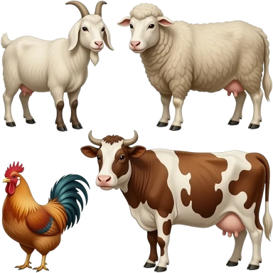 Sick and dying goats and sheep’s, chickens, cows in a field emoji