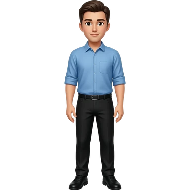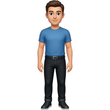 chico con camiseta azul pantalones negros pero con piernas zapatos i que tenga mas 18 años i que el chico sea gordo sin gafas emoji
