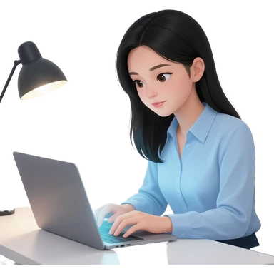 chica pelinegra, con partido de lado y con una computadora emoji