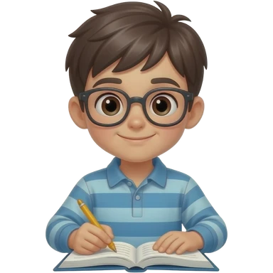 chico con braquets y gafas cuadradas , pelo tupe marron oscuro, pestañas largas emoji