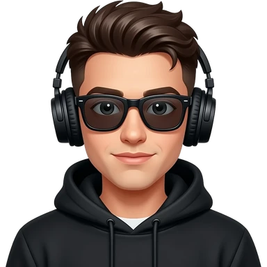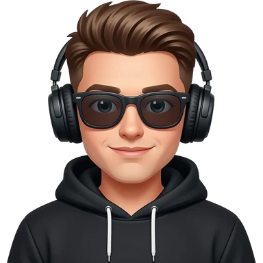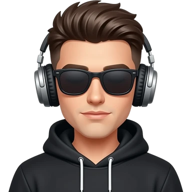 Chico joven con corte de moda audífonos sudadera negra y lentes oscuros q no se le vean sus ojos emoji | AI Emoji Generator