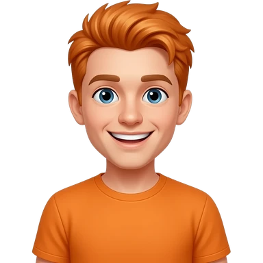 Joven masculino con cabello naranja sonrisa amplia playera naranja emoji
