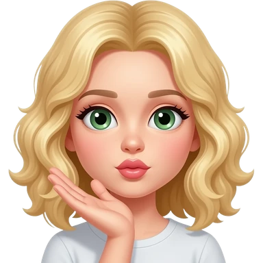 Chica rubia de pelo rizado y ojos verdes oscuris manda un beso con la mano emoji