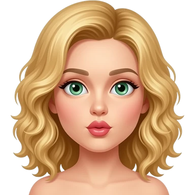Mujer gordita pelo corto rizado rubio ojos grandes verdes dando un beso emoji