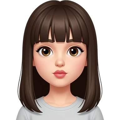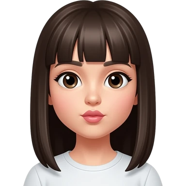 Una chica con el pelo lacio con flequillo y tirando un beso emoji