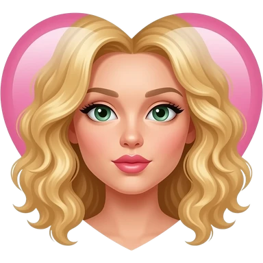 Rubia pelo rizado ojos verdes oscuros mandando un beso del que sale un corazón emoji