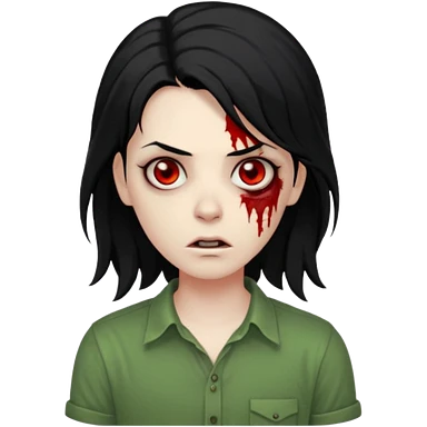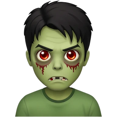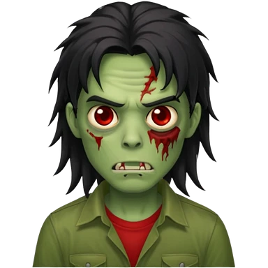 chico pelo medio largo ojos rojos y una camisa verde ,pelo negro y mas voluminoso zombie emoji