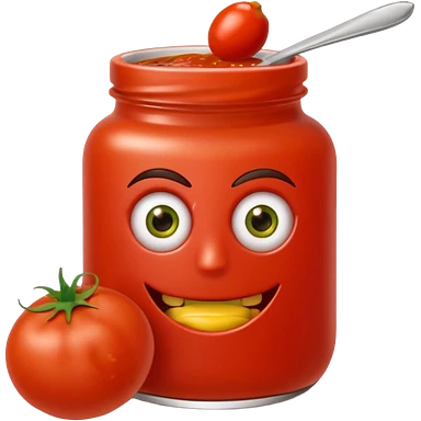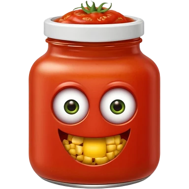 Un tarro de salsa de tomate y un tarro de salsa de mostaza al uno al lado del otro, los dos tarros con ojos emoji