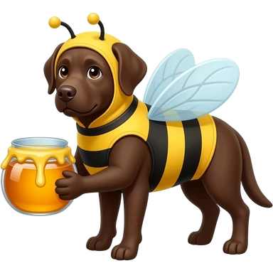 chocolate labrador dressed in a bee suit with a pot of honey emoji