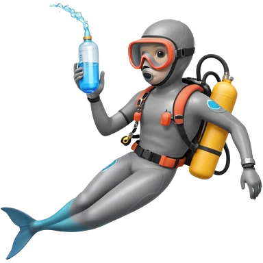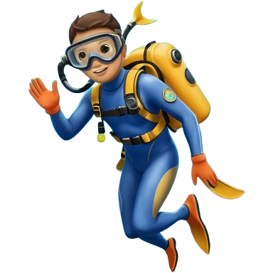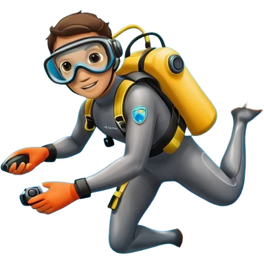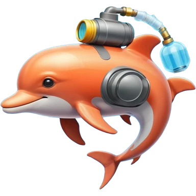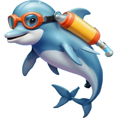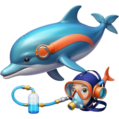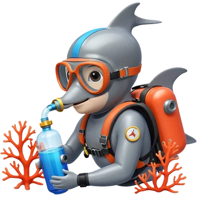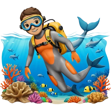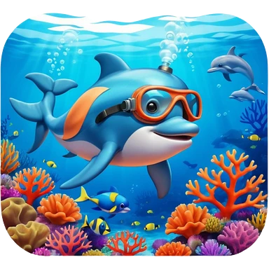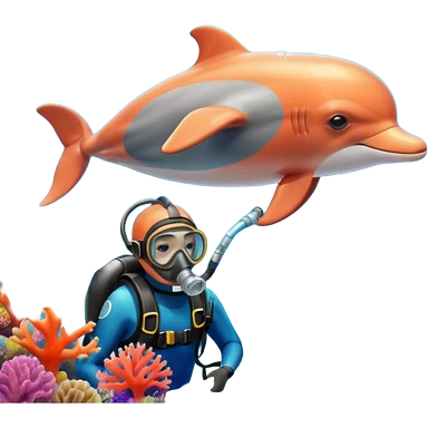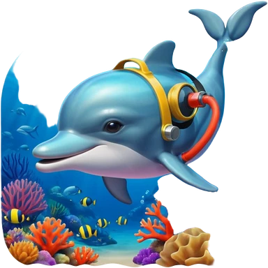 A brave dolphin in diver mask and oxygen tank, exploring coral emoji