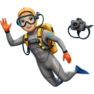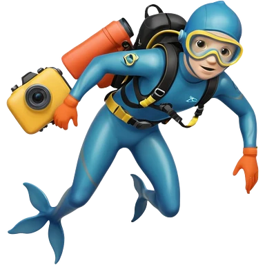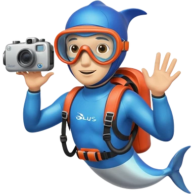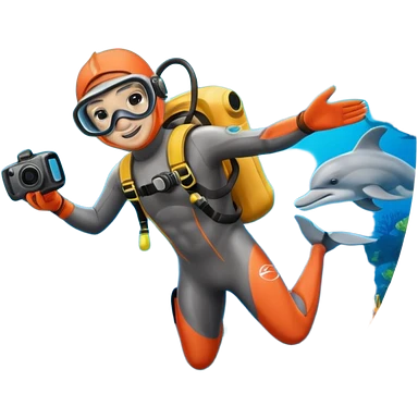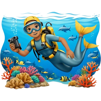 A brave dolphin diver in flippers and mask, exploring coral with a waterproof camera. emoji