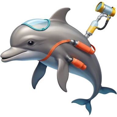 A brave dolphin in diver mask and oxygen tank on its back, exploring coral emoji