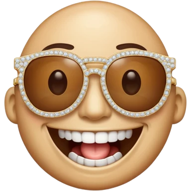 Un emoji riendose con diamantes en los dientes y con unas gafas de sol emoji