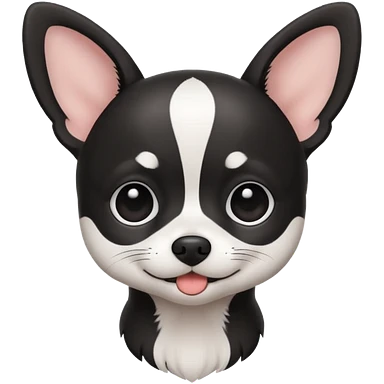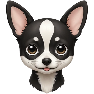 A black and white chihuahua emoji please with a thin white line on the center of head nose pointy emoji