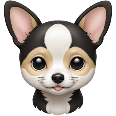 A black and white chihuahua emoji please with a white line on the center of head and not a big line emoji
