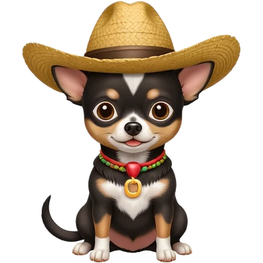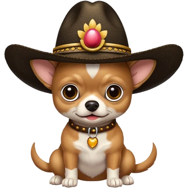 Chihuahua with white black fur on the forehead and a brown snout with a black nose emoji