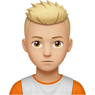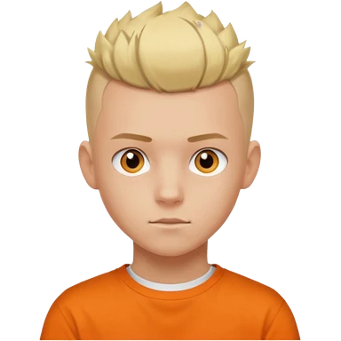 Blonde Buzzcut And Mohawk. Amber Eye. Orange Tshirt. White Sleeve. Teenage Boy emoji