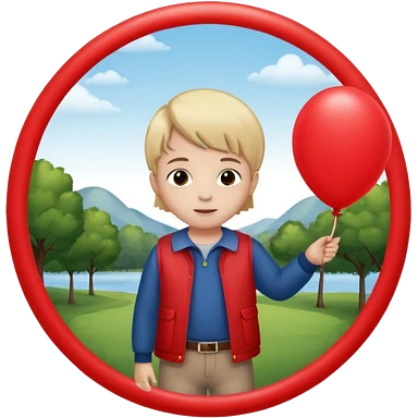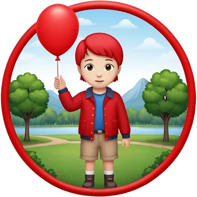 Child + balloon, Park Visitor, with park background, cicrle style frame. emoji