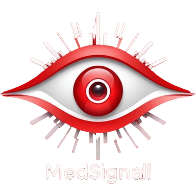 Eye-catching logo for MedSignal, red pulse cutting through geometric forms forming the letters ‘AI’, glowing red highlights with smooth, modern lines, clean white background, powerful and memorable for a tech-forward healthcare brand emoji