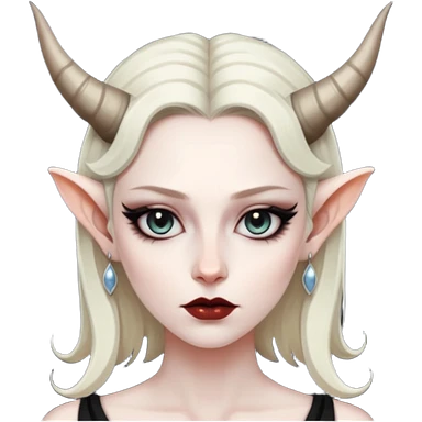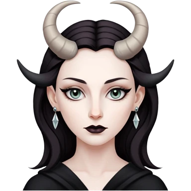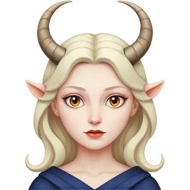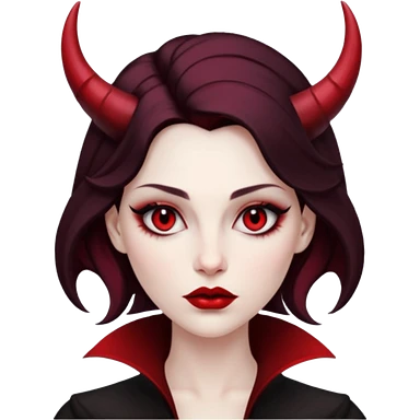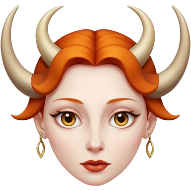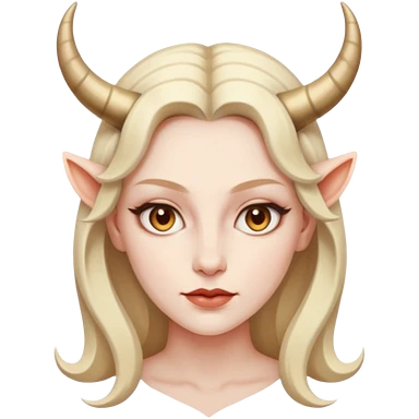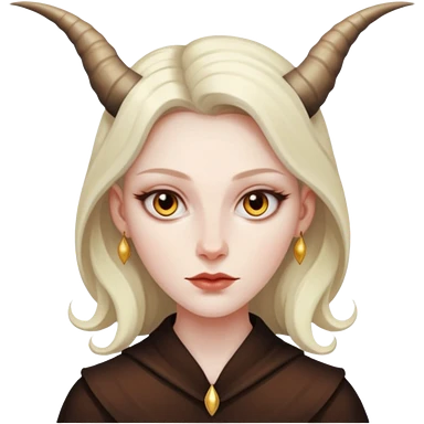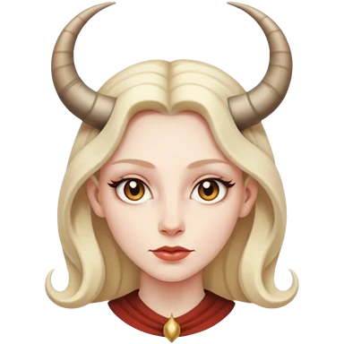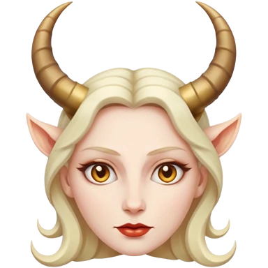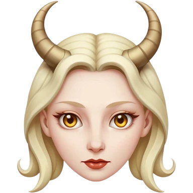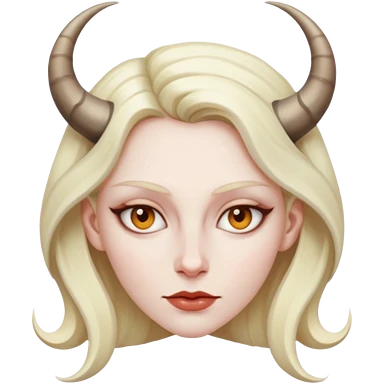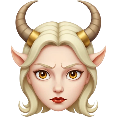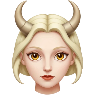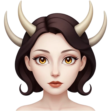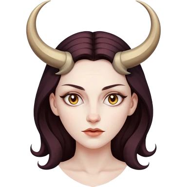 Woman with subtle horns, smooth skin and sharp gaze, divine corruption emoji