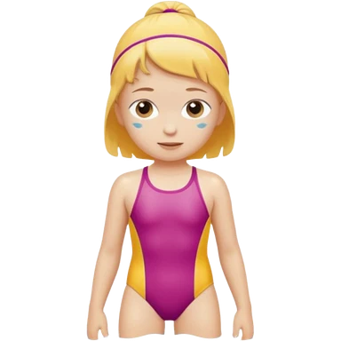 Child swimmer girl standing only shorts no shirt emoji | AI Emoji Generator