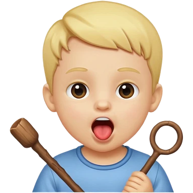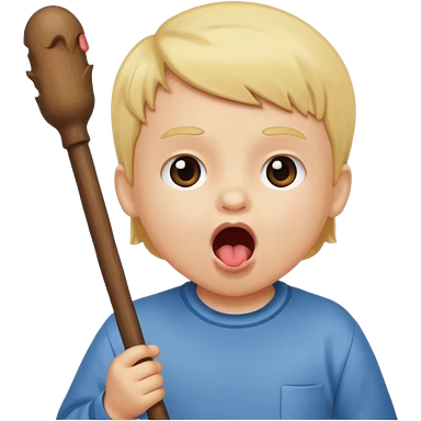 A stick with an open mouth without a tongue in a white child emoji