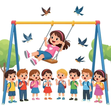 birds imagine dragons one girl is felling off the knee and 11 children are surprised af Playground school emoji