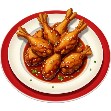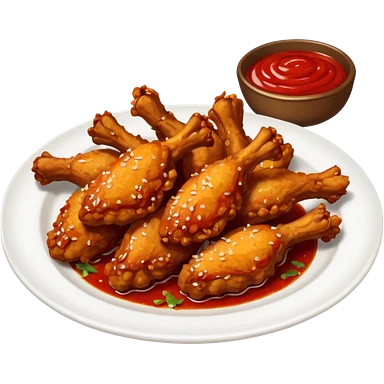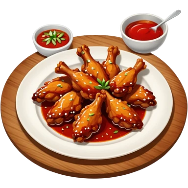 plate of spicy chicken wings with red sauce and chili flakes emoji