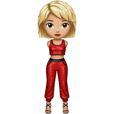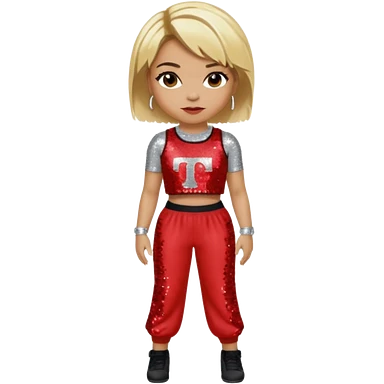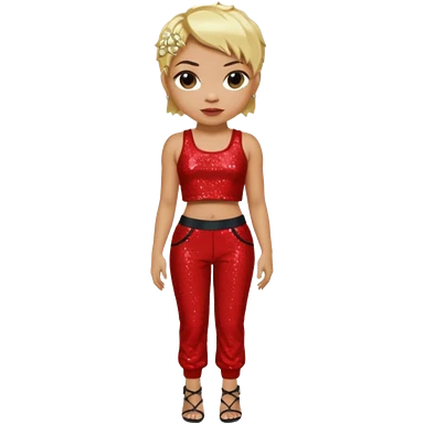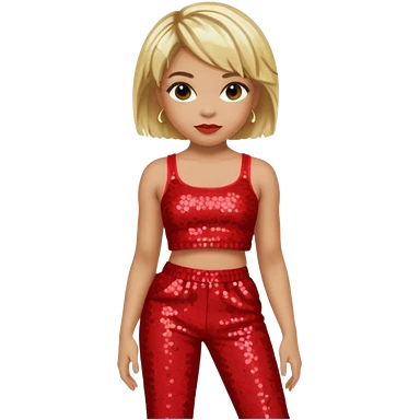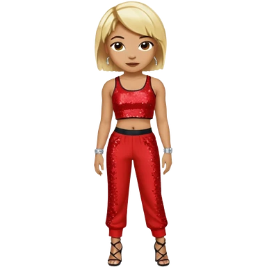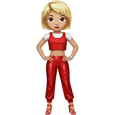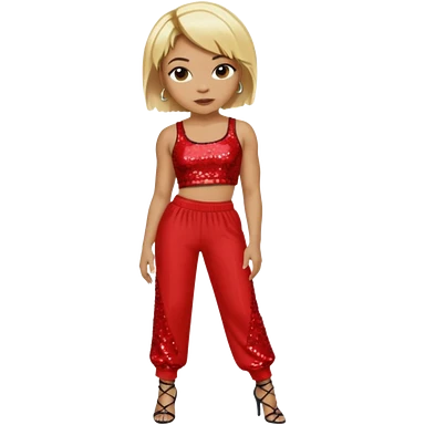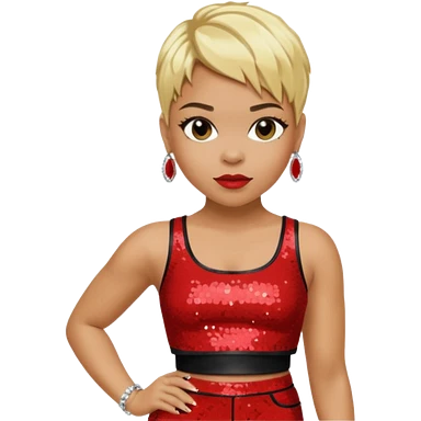 T Boz from TLC with short blonde hair, red sequin crop top and pants emoji