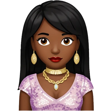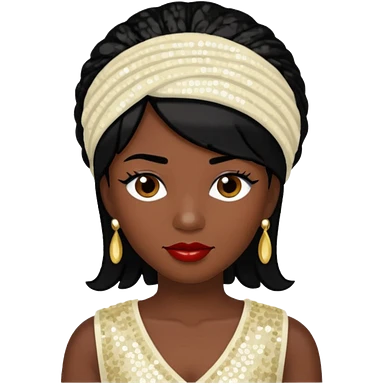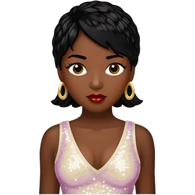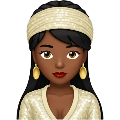 Chilli from TLC with dark skin, black hair, ivory sequin outfit emoji