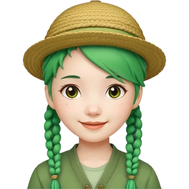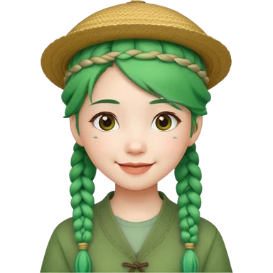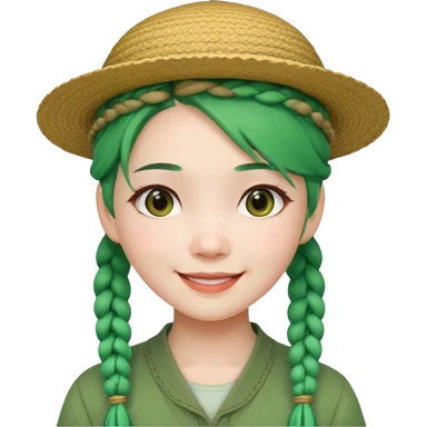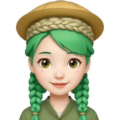 chinese girl green haired with braids an hat emoji