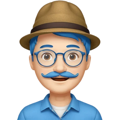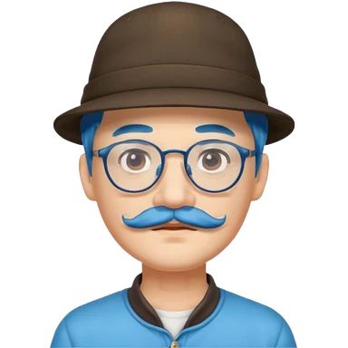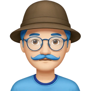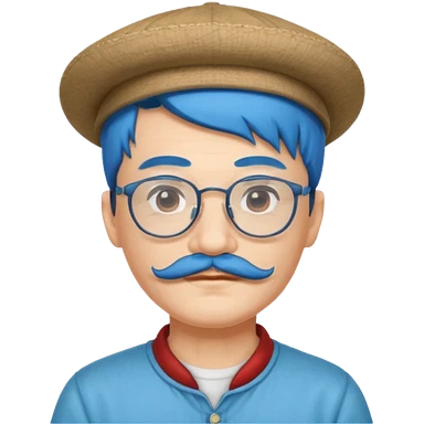 chinese man blue haired and hat and glassess and mustache emoji