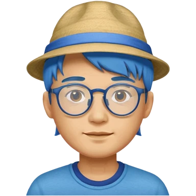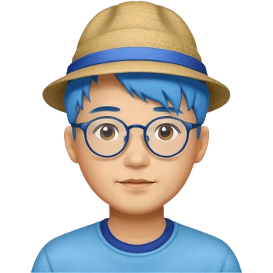 chinese man blue haired and hat and glassess emoji