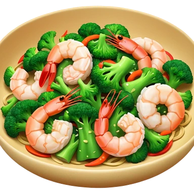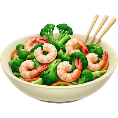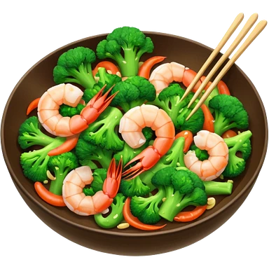 Chinese dish shrimp with broccoli and rice in Chinese container emoji | AI Emoji Generator